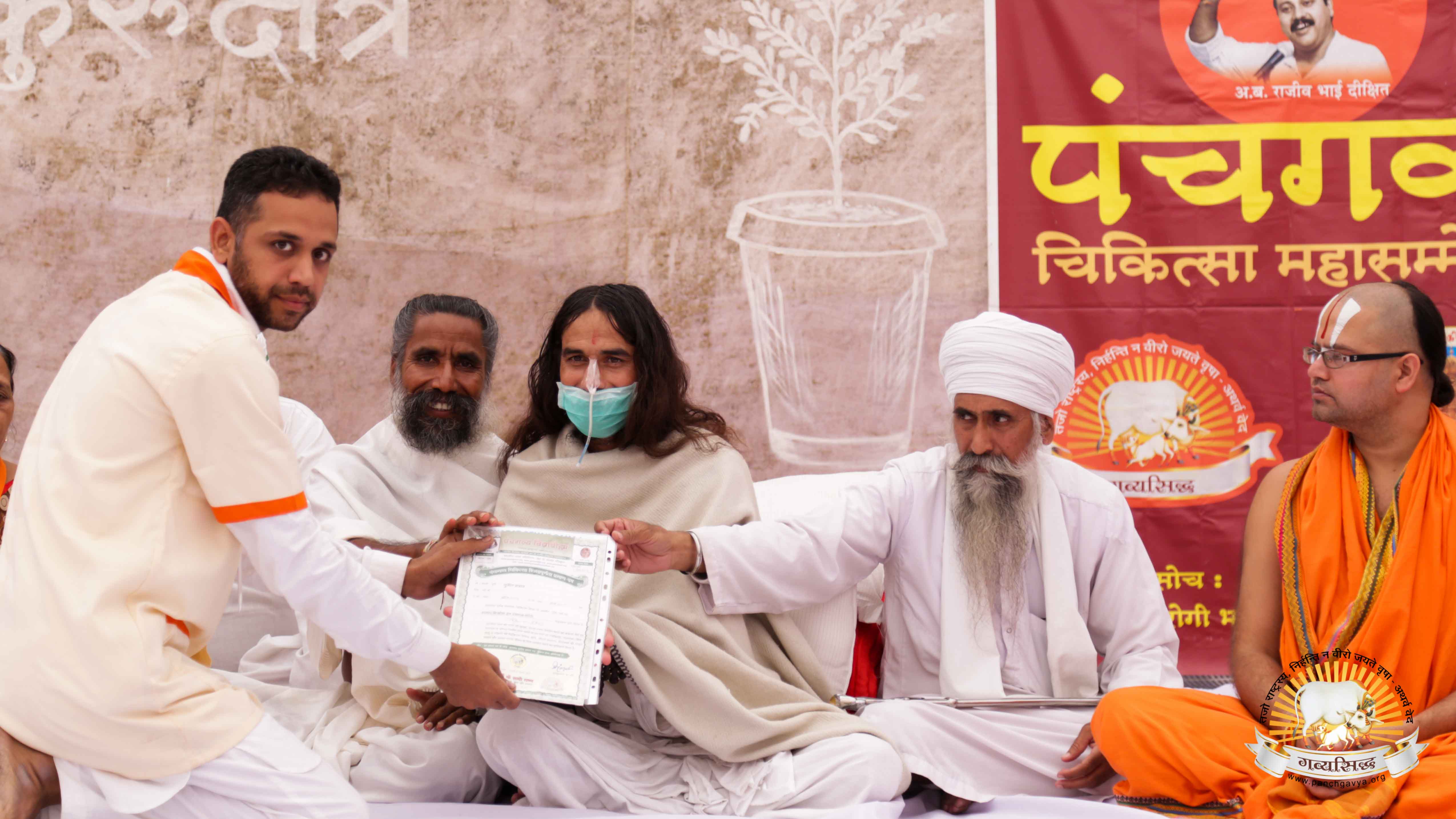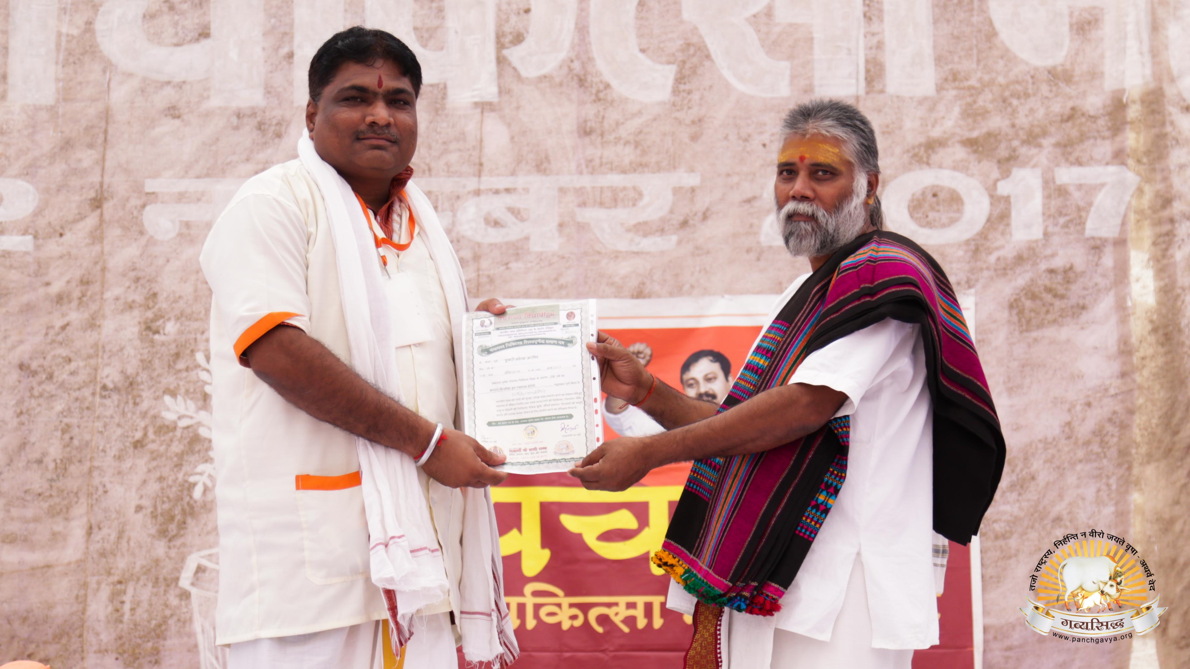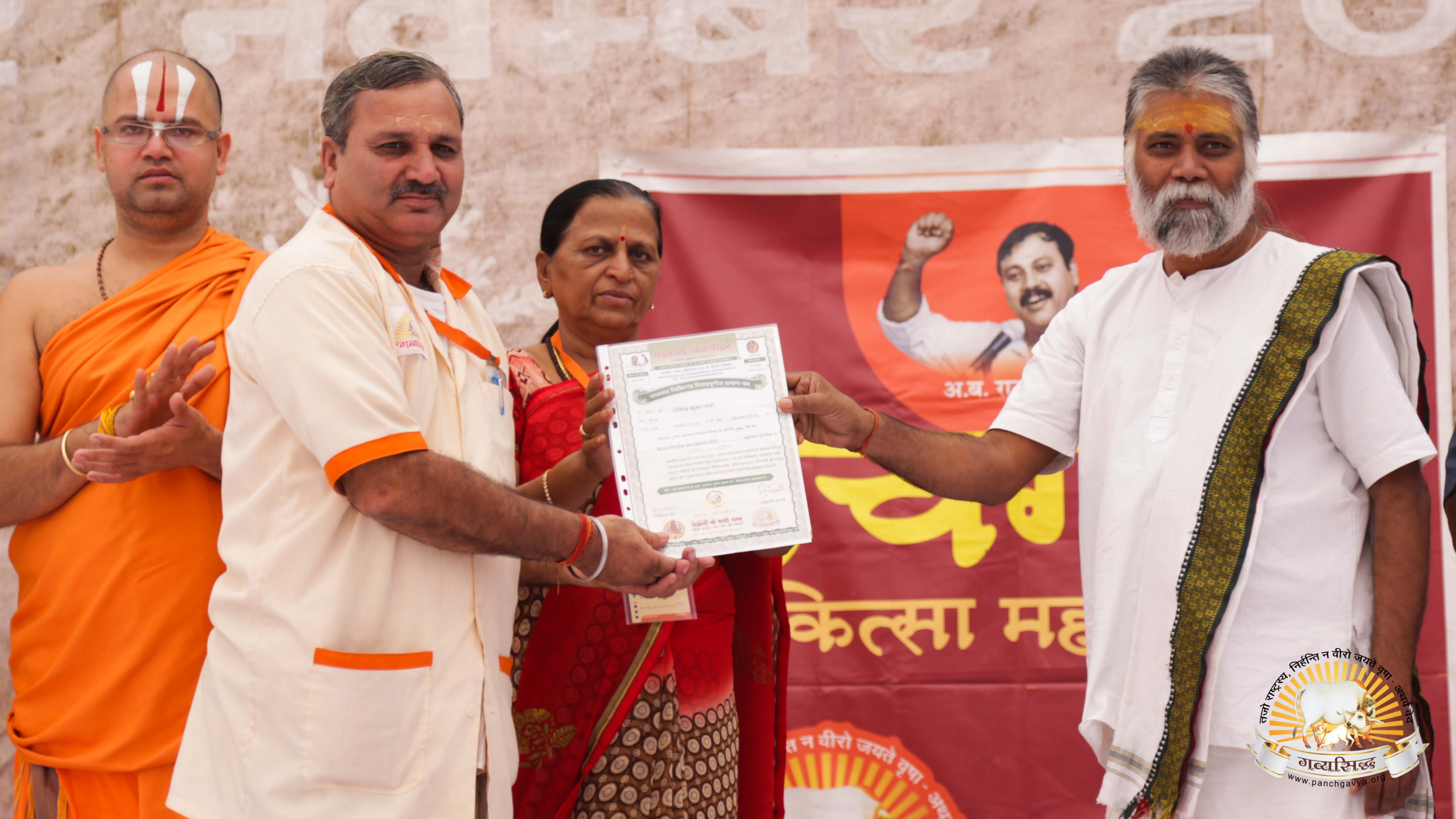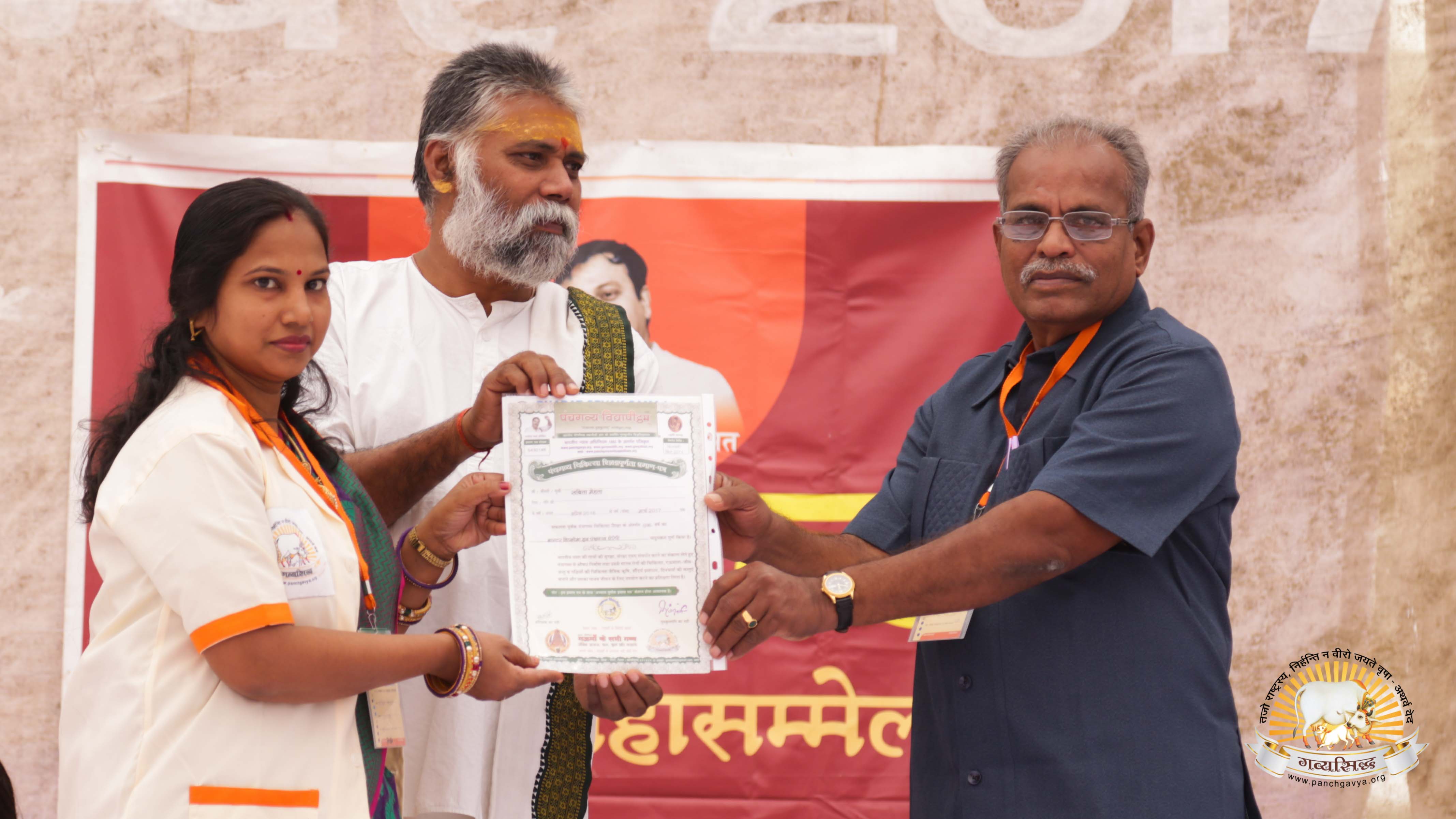 पंचगव्य चिकित्सा के लिए पंजीकृत गव्यसिद्ध डॉक्टर प्रमाण पत्र ग्रहण करते हुए.