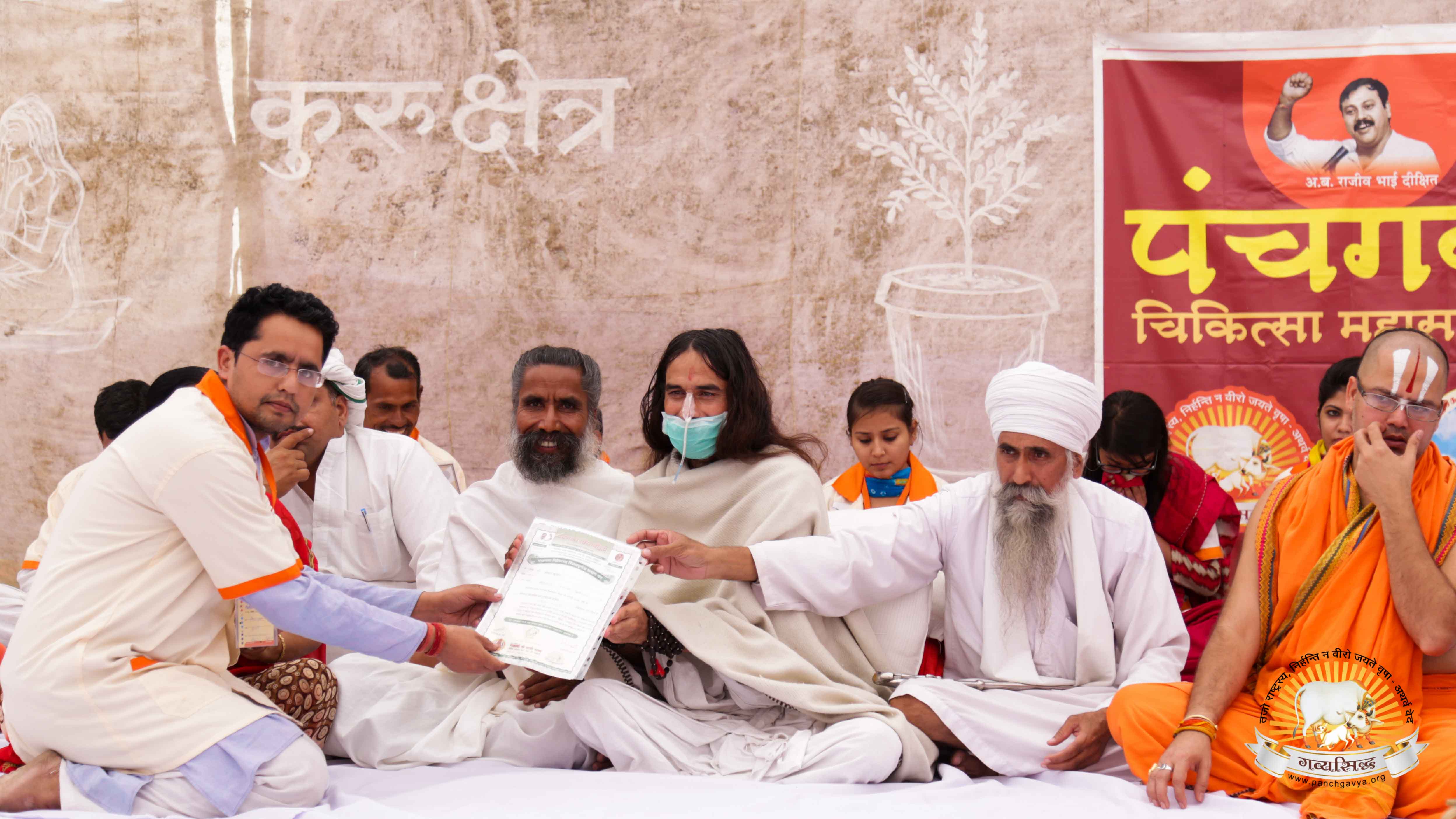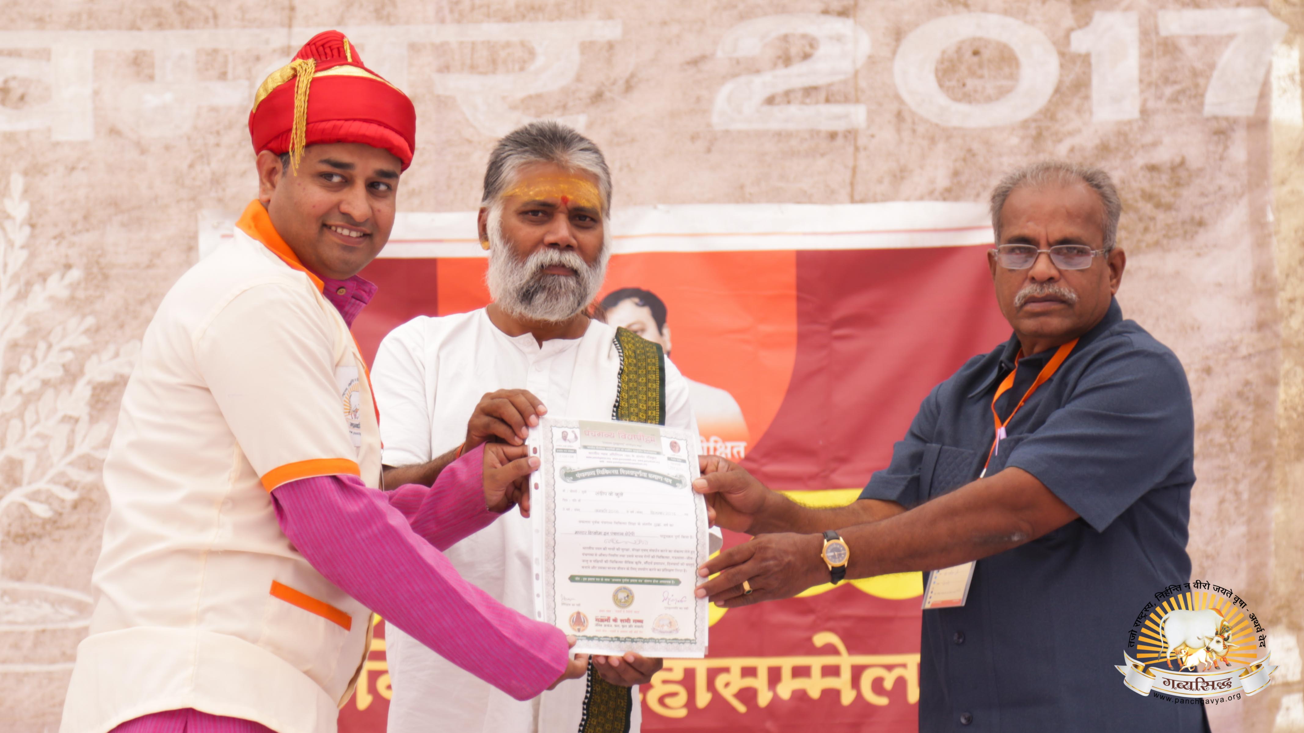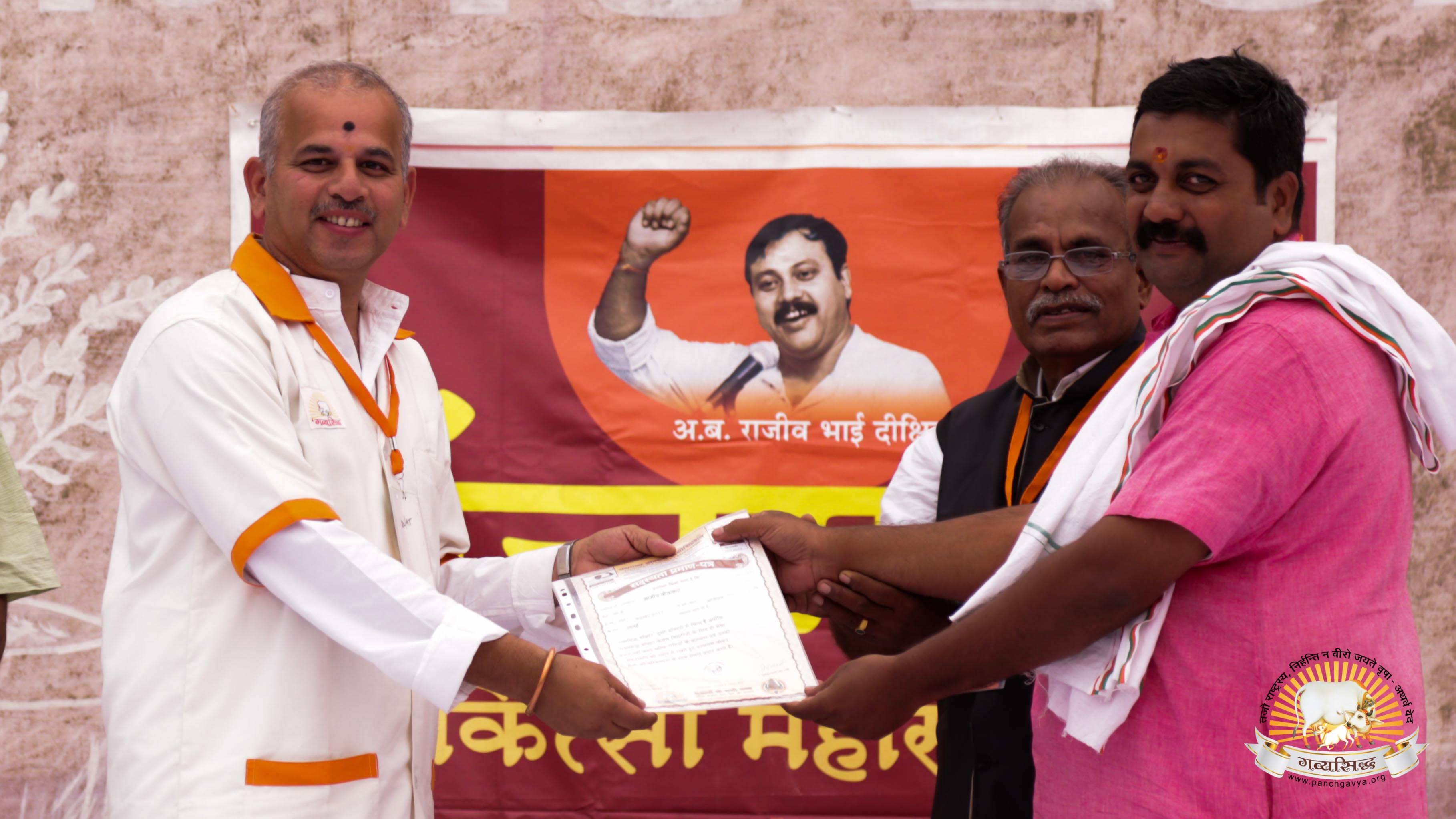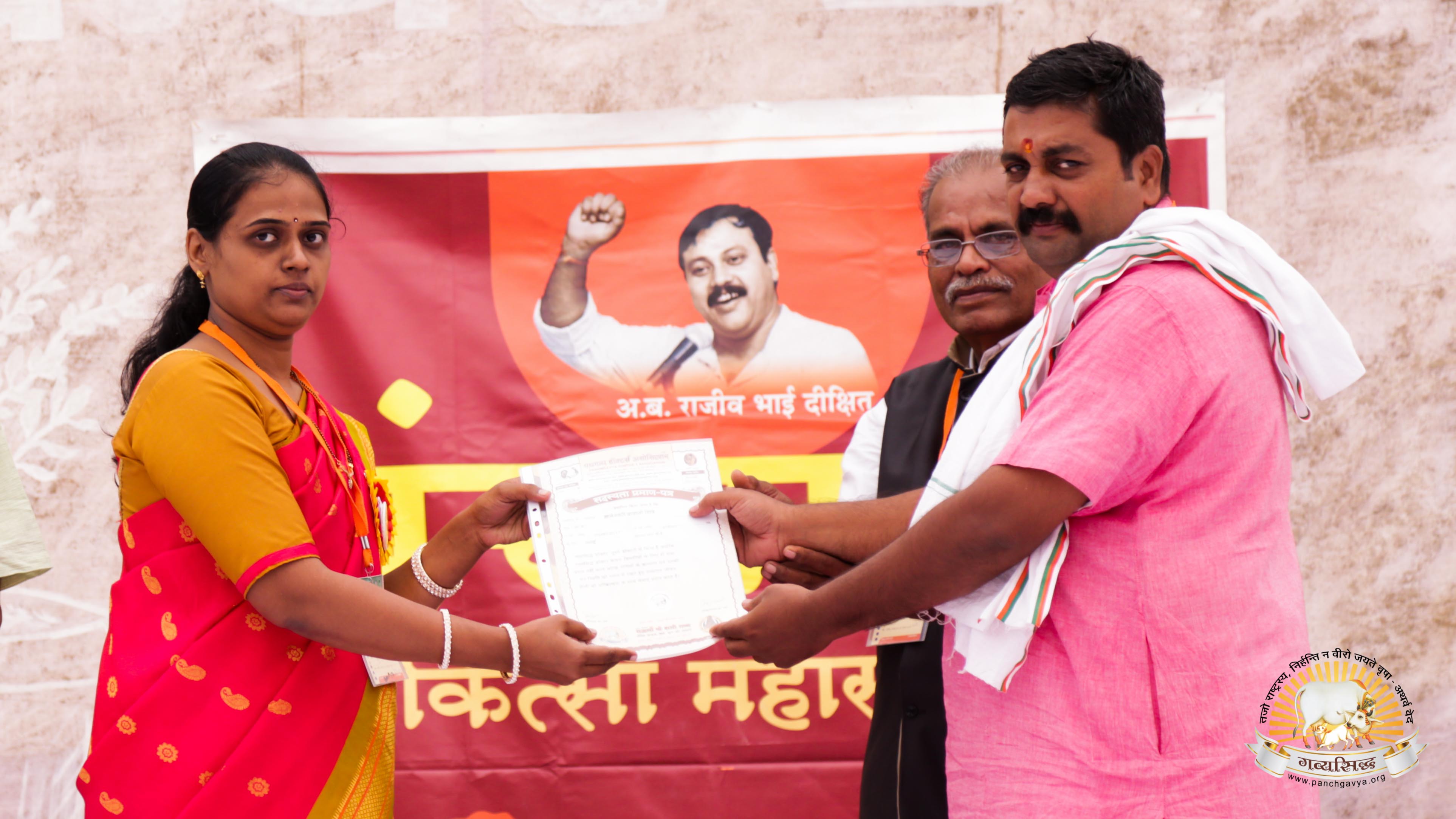 पंचगव्य चिकित्सा के लिए पंजीकृत गव्यसिद्ध डॉक्टर प्रमाण पत्र ग्रहण करते हुए.